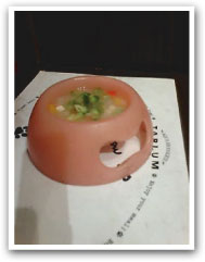 はなちゃんはのごはんは”有機野菜と鶏ササミのスープ仕立て”。