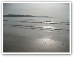 今度は片瀬西浜海水浴場。ここから向こうに見える江ノ島まで砂浜を散歩。