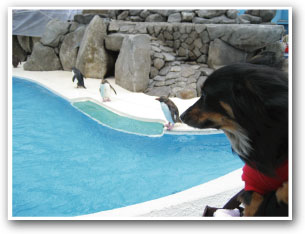 よちよちと歩くペンギンをじーっと見つめるはなちゃん。
