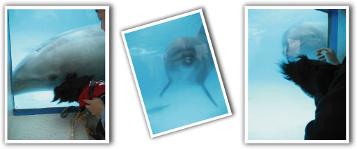 イルカさんに話しかけられてびっくりのはなちゃん。